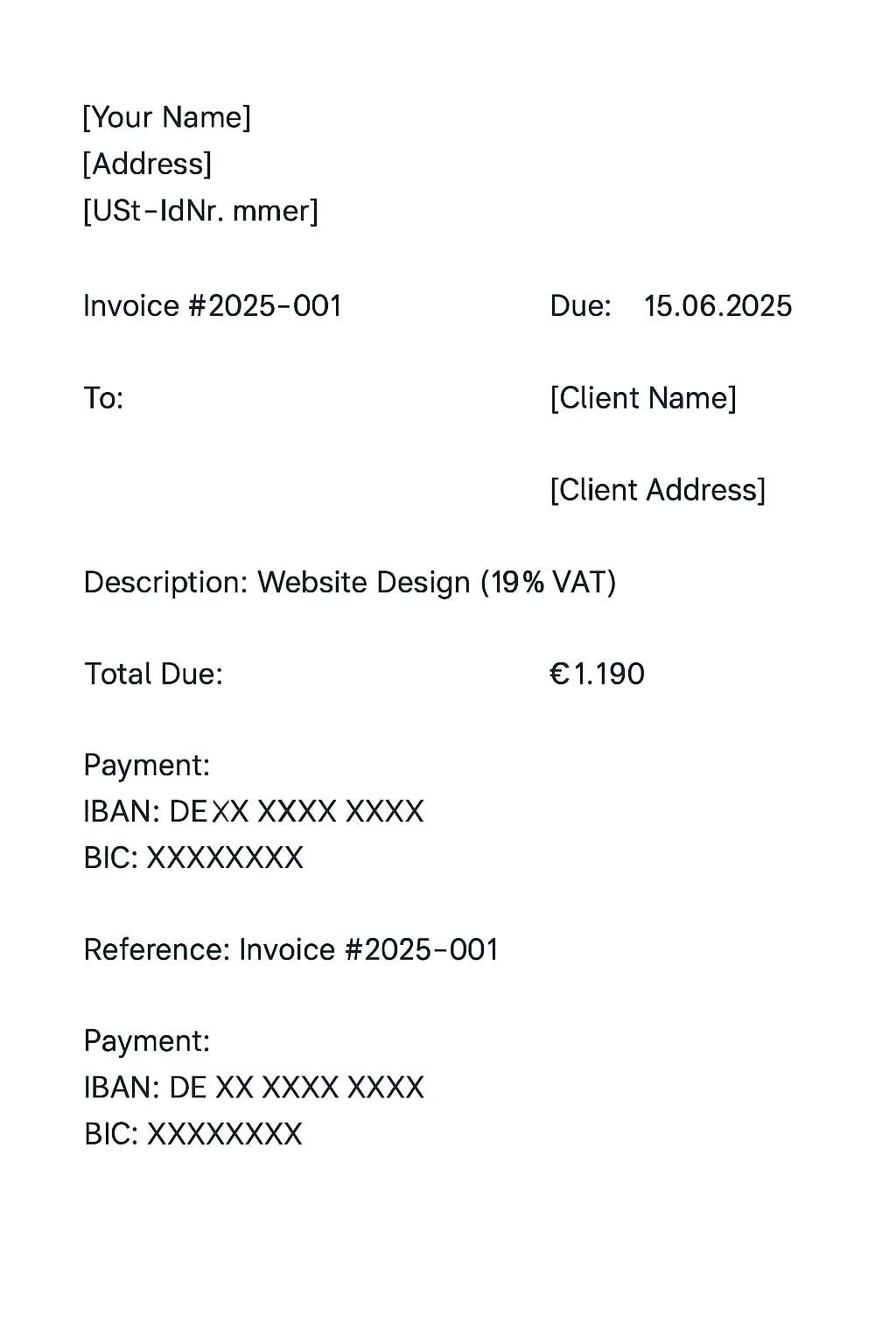• Payment details (IBAN, due date)